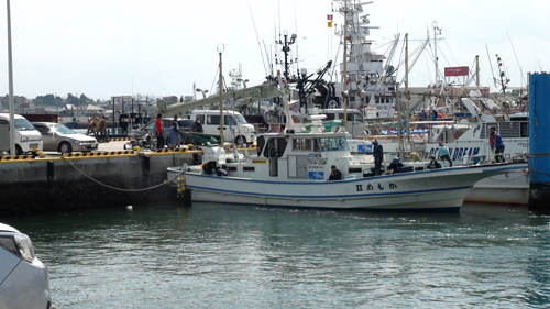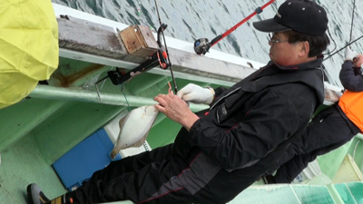 | 港に戻れば、「楽しい釣果を見せてください」の検量です。 |