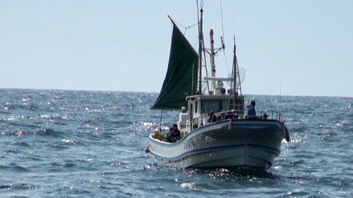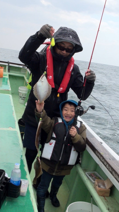 | 約一時間のクルージングからカレイのポイントに近づくと、親子それぞれのチームが釣りに集中デス! |