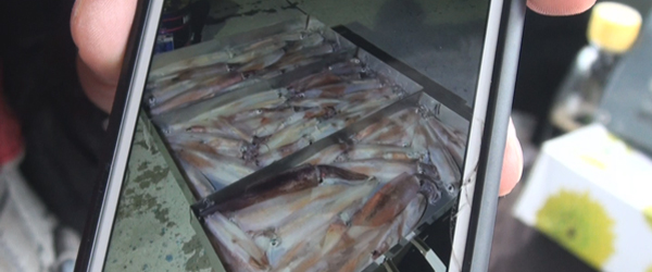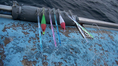 | イカ釣りの仕掛けにこだわる船長 |