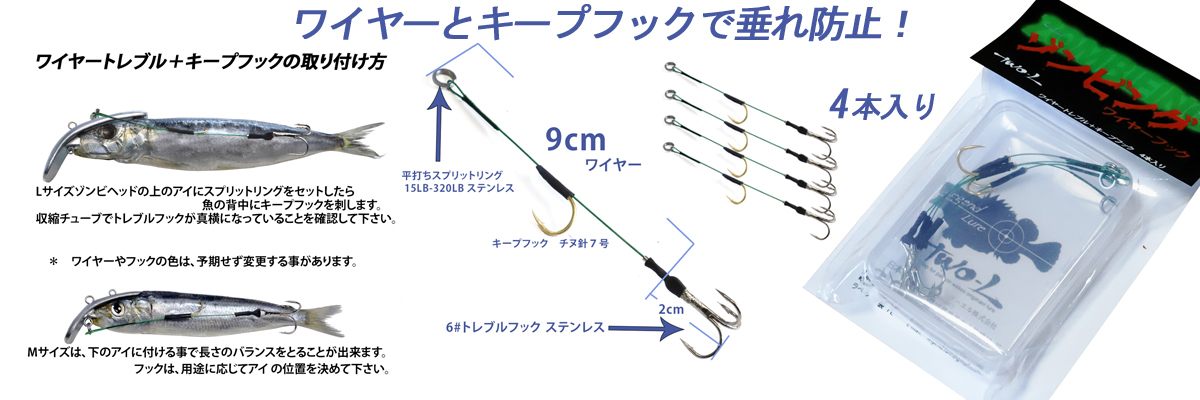 ※この商品はAIZフィッシングが発売するゾンビヘッドMタイプ専用の三本チラシ鉤5本組になります。