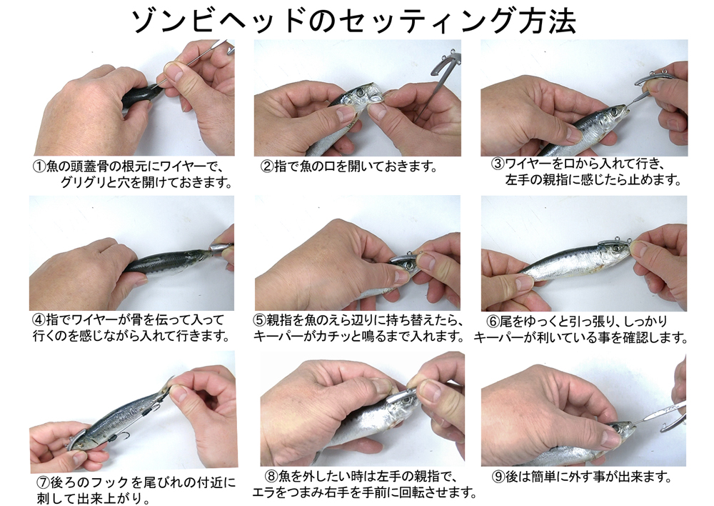 ※ヒラメ狙いで活きたイワシが手に入らない時、このゾンビングジグヘッドを使うと死んだイワシを操る事が出来るのです。